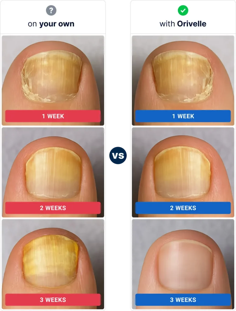 But when Orivelle is used, the story changes dramatically. Our powerful yet natural 17-ingredient formula works to eliminate fungus at the root, restore healthy nail appearance, and protect against future infections.